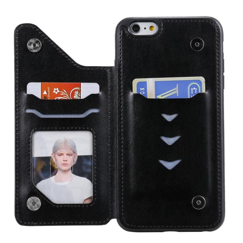 Θήκη προστασίας για iPhone 6 Plus με ανάγλυφο σχέδιο έξι γατών, με βάση στήριξης & θήκες για κάρτες & κορνίζα φωτογραφιών (Μαύρο)