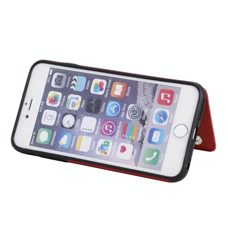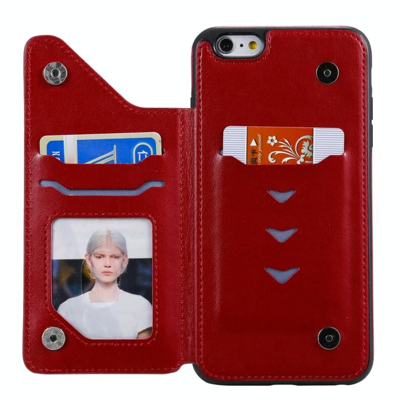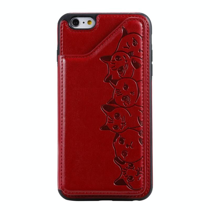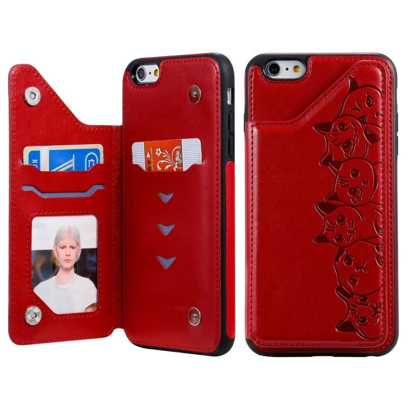 For iPhone 6 Plus Six Cats Embossing Pattern Protective Case with Holder & Card Slots & Photo Frame(Red)