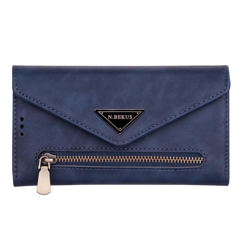Θήκη για iPhone 6 Plus με αίσθηση δέρματος, οριζόντια, με φερμουάρ, με θήκη, υποδοχές καρτών, κορνίζα φωτογραφιών, κορδόνι και μακρύ σχοινί (Μαύρο)