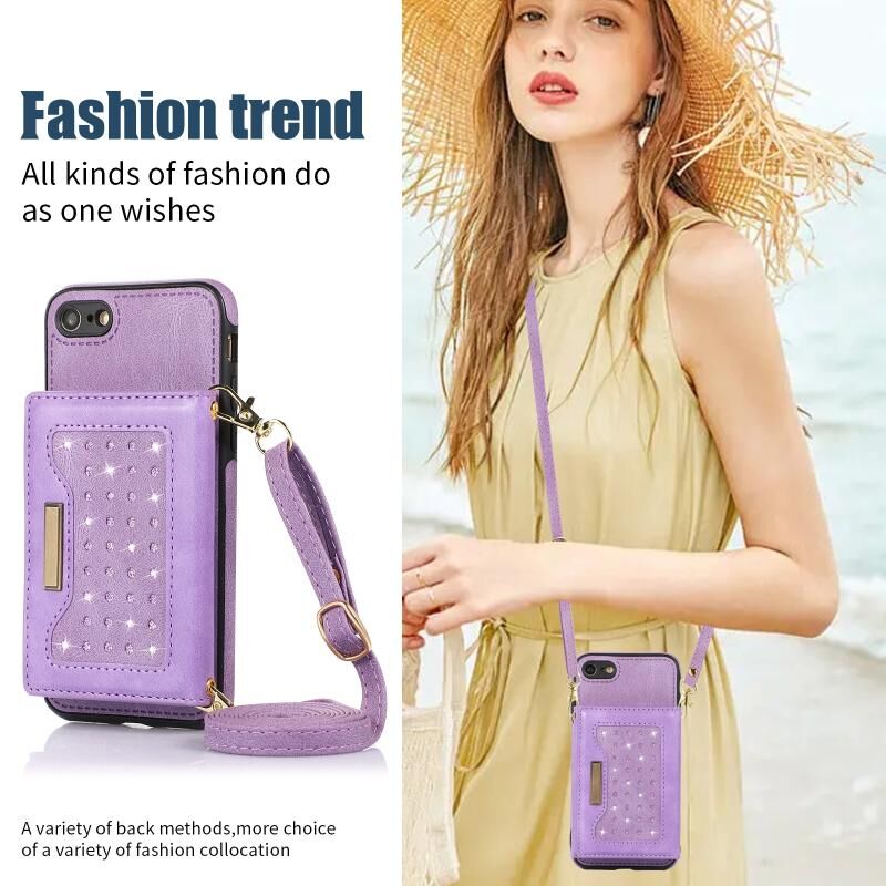 Θήκη τηλεφώνου από δέρμα με τριπλή αναδίπλωση και προστασία RFID για iPhone 6 Plus με κορδόνι (Μαύρο)