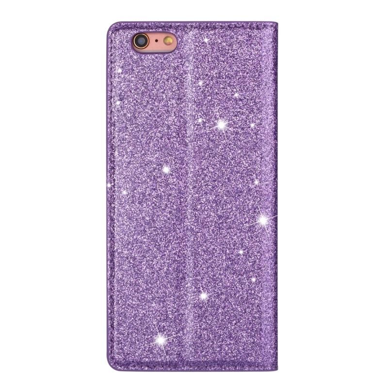 Θήκη για iPhone 6 Plus, εξαιρετικά λεπτή, με γκλίτερ, μαγνητικό κλείσιμο, οριζόντια, από δέρμα με βάση στήριξης & θήκες για κάρτες (Μωβ)