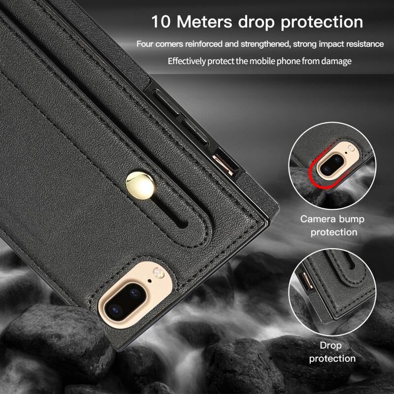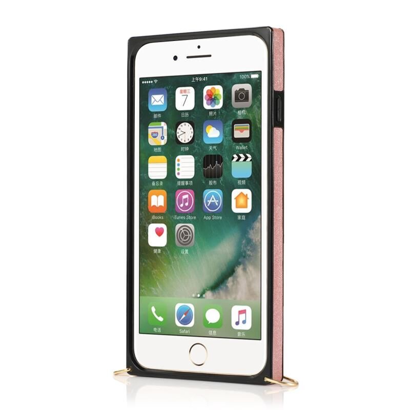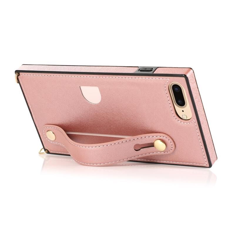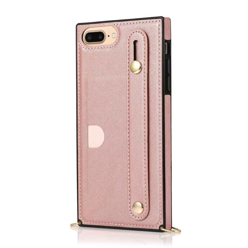 Θήκη προστασίας για iPhone 6 Plus με λουρί καρπού, PU+TPU ανθεκτική στις κρούσεις, με λουρί σώματος, βάση και θήκη για κάρτες (Χρυσό ροζ)
