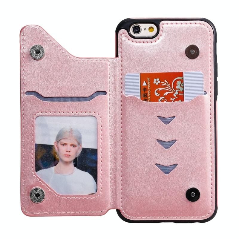 For iPhone 6 Six Cats Embossing Pattern Protective Case with Holder & Card Slots & Photo Frame(Rose Gold)