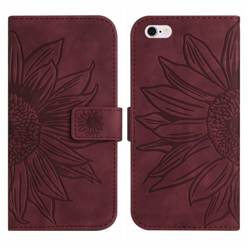 Θήκη τηλεφώνου από δέρμα με σχέδιο ηλιοτρόπιου και αίσθηση δέρματος για iPhone 6, με λουρί (Κόκκινο)