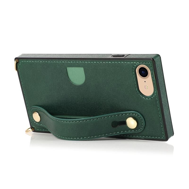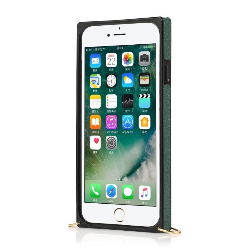 Θήκη προστασίας για iPhone 6 με λουρί καρπού, PU+TPU ανθεκτική στις κρούσεις, με λουρί σώματος, βάση και θήκη για κάρτες (Πράσινο)