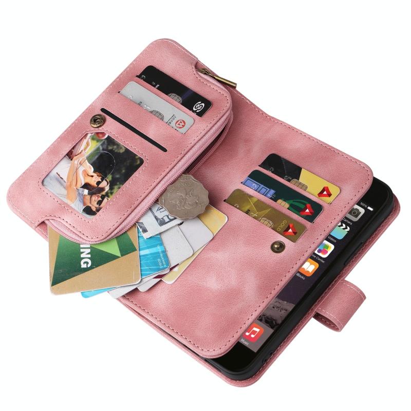 For iPhone 6s / 6 Multifunctional Card Slot Zipper Wallet Leather Phone Case(Rose Gold)