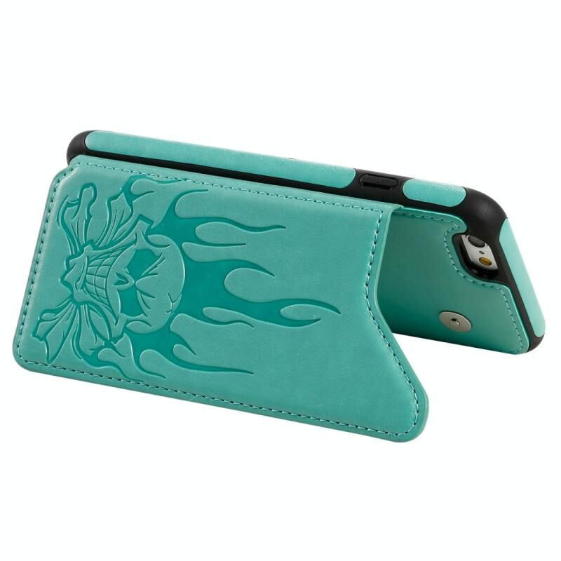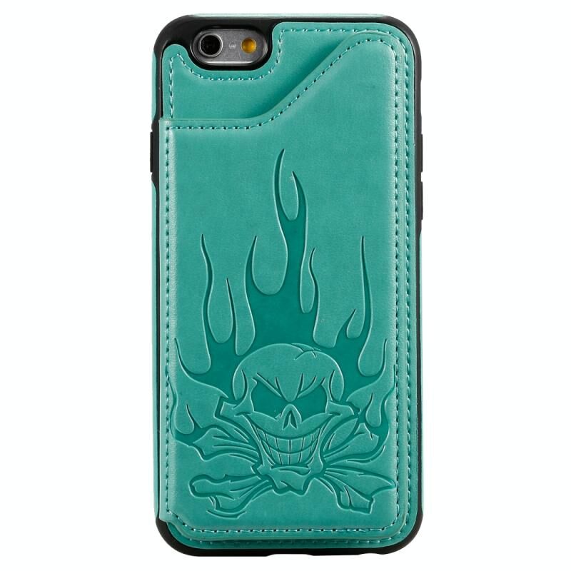Θήκη προστασίας για iPhone 6s / 6 με ανάγλυφο σχέδιο κρανίου, ανθεκτική σε κρούσεις, με βάση στήριξης & θήκες για κάρτες & πορτοφόλι (πράσινο)