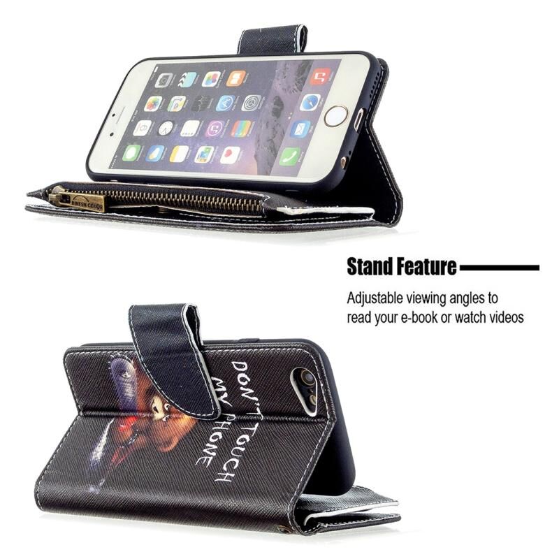 Θήκη δέρματος οριζόντιας αναδίπλωσης με φερμουάρ για iPhone 6s & 6 με έγχρωμο σχέδιο, βάση στήριξης & θήκες για κάρτες & πορτοφόλι (Κόκκινο)