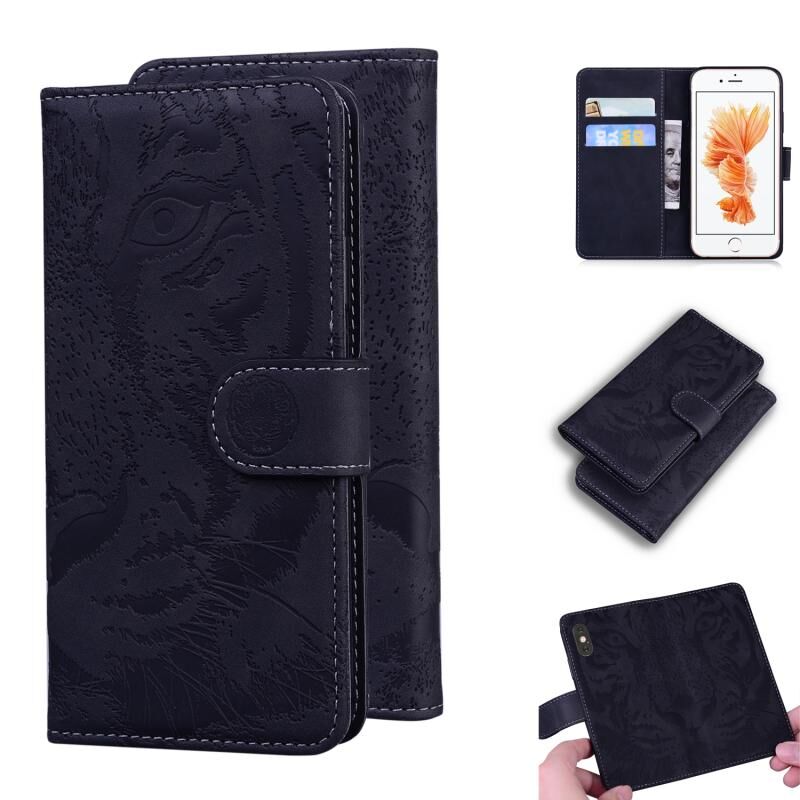 Θήκη δέρματος οριζόντιας αναδίπλωσης με ανάγλυφο μοτίβο τίγρης για iPhone 6s Plus / 6 Plus με βάση & υποδοχές καρτών & πορτοφόλι (Μαύρο)