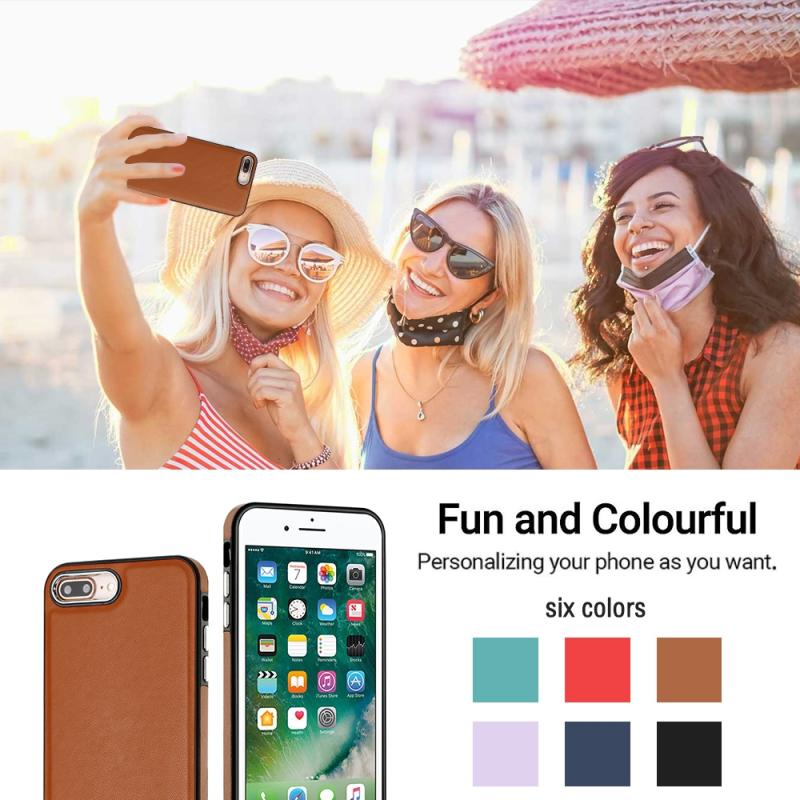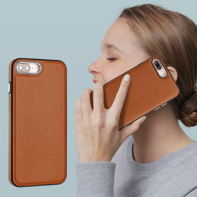 Θήκη κινητού τηλεφώνου πλήρους κάλυψης με υφή δέρματος για iPhone 6s Plus / 7 Plus / 8 Plus (Καφέ)