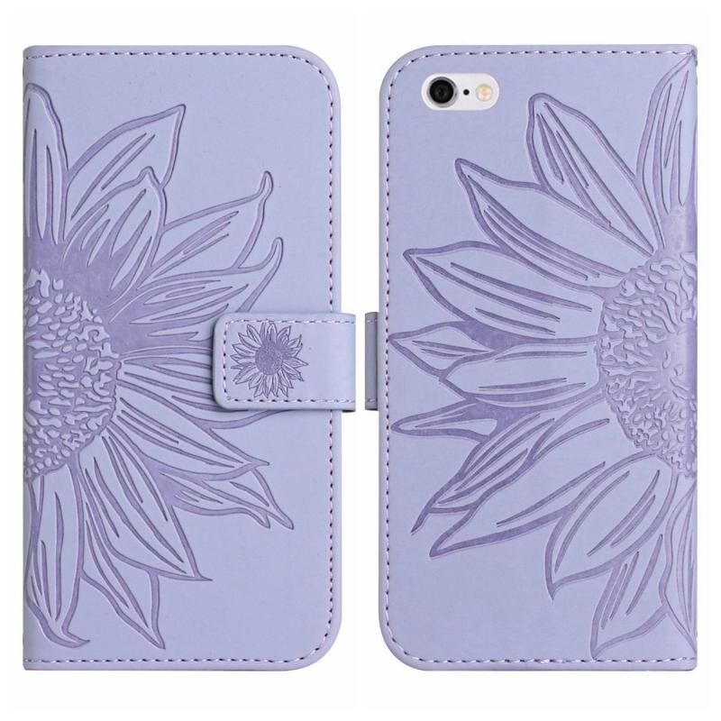 Θήκη τηλεφώνου από δέρμα με σχέδιο ηλίανθου και αίσθηση δέρματος για iPhone 6s Plus, τύπου flip με κορδόνι (Κόκκινο)