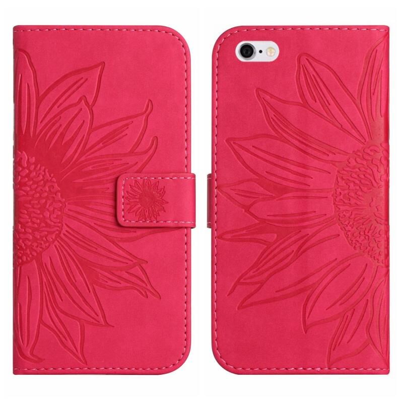 Θήκη τηλεφώνου από δέρμα με σχέδιο ηλίανθου και αίσθηση δέρματος για iPhone 6s Plus, τύπου flip με κορδόνι (Κόκκινο)