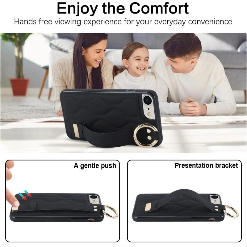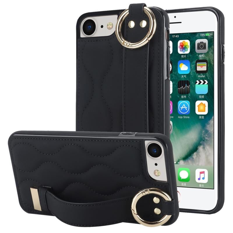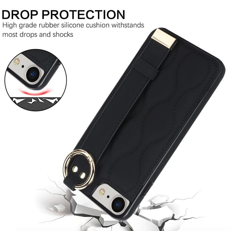 Θήκη τηλεφώνου για iPhone 7 / 8 με αντιολισθητική πλήρη κάλυψη, δακτύλιο και λουρί καρπού (Μαύρο)