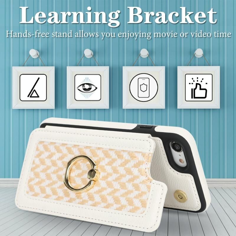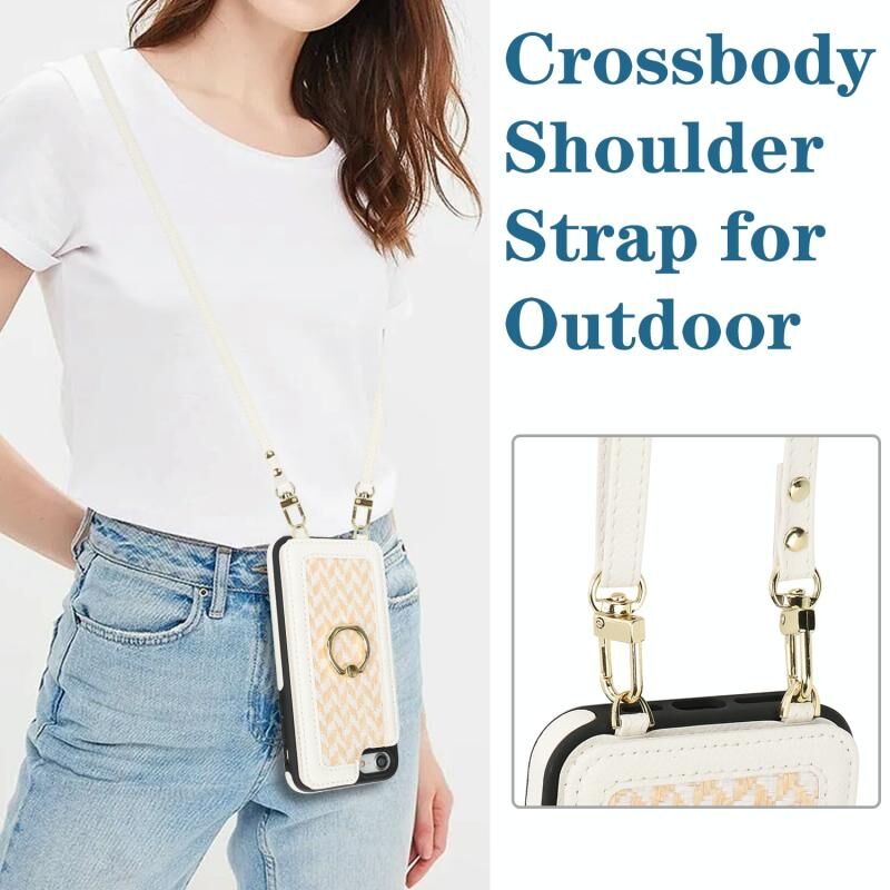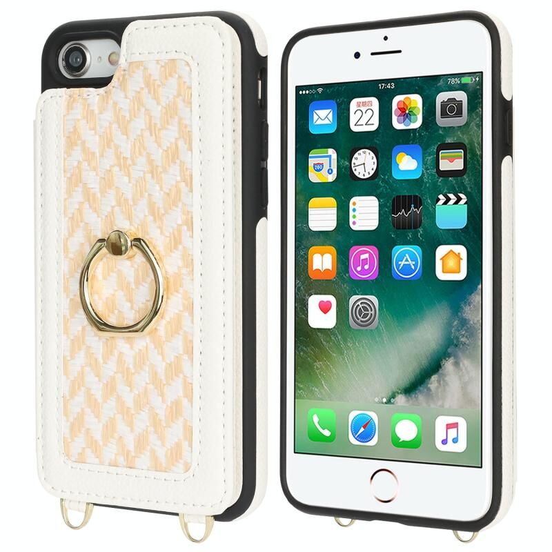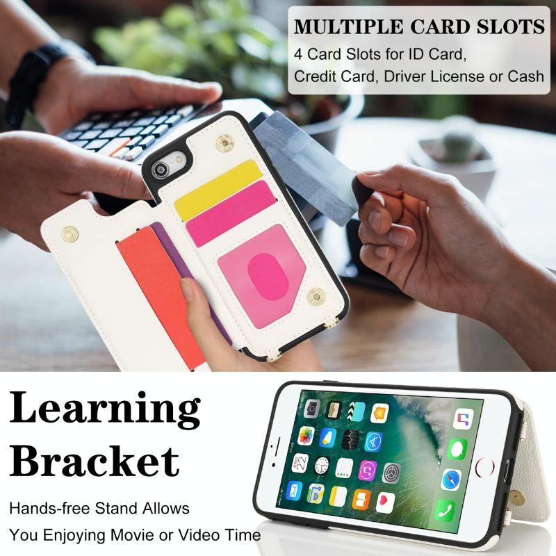 Θήκη τηλεφώνου με διπλή πόρπη για κάρτες, πλήρη κάλυψη και λουρί χιαστί για iPhone 7 / 8 / SE 2020 2022 (Λευκό)