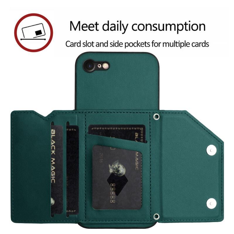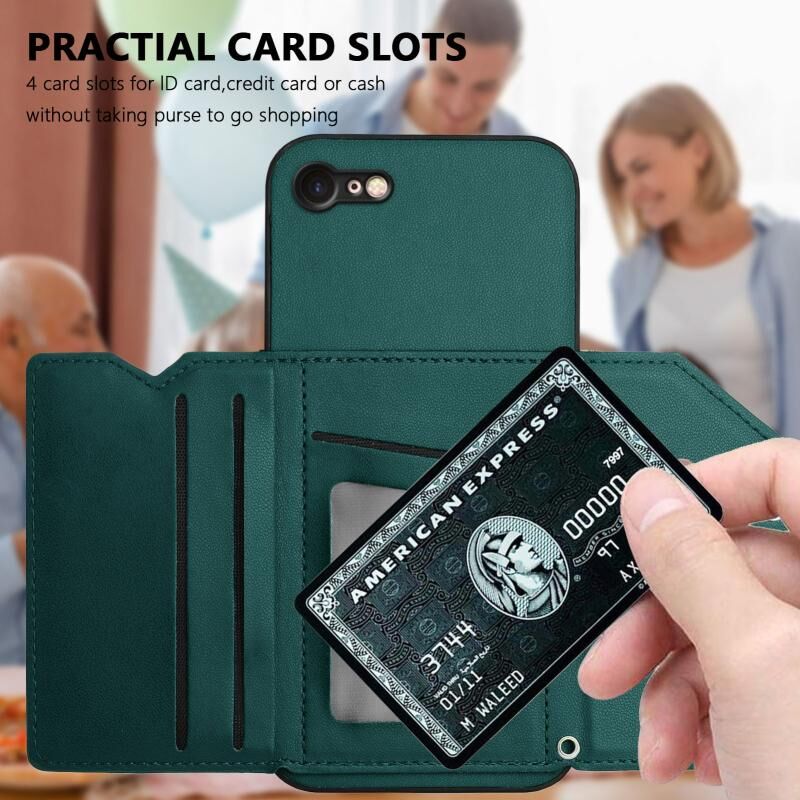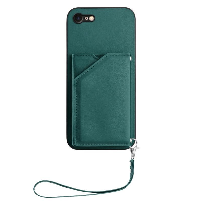 For iPhone 7 / 8 / SE 2020 2022 Skin Feel Four Card Slots Phone Case with Wrist Strap(Green)