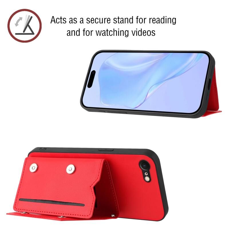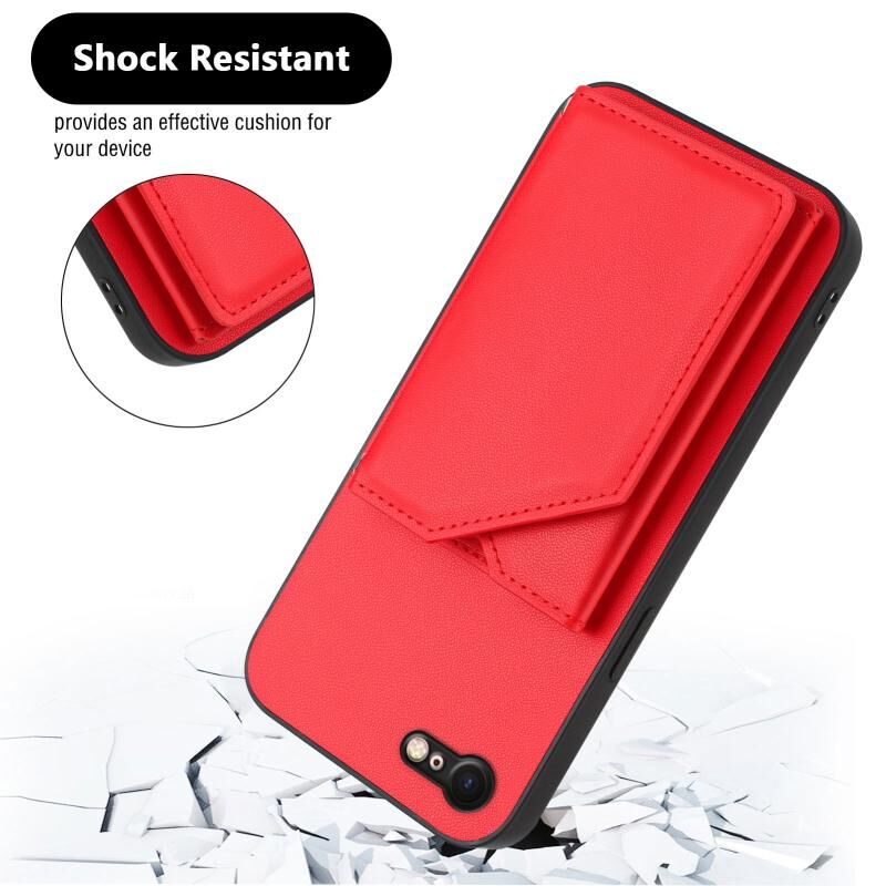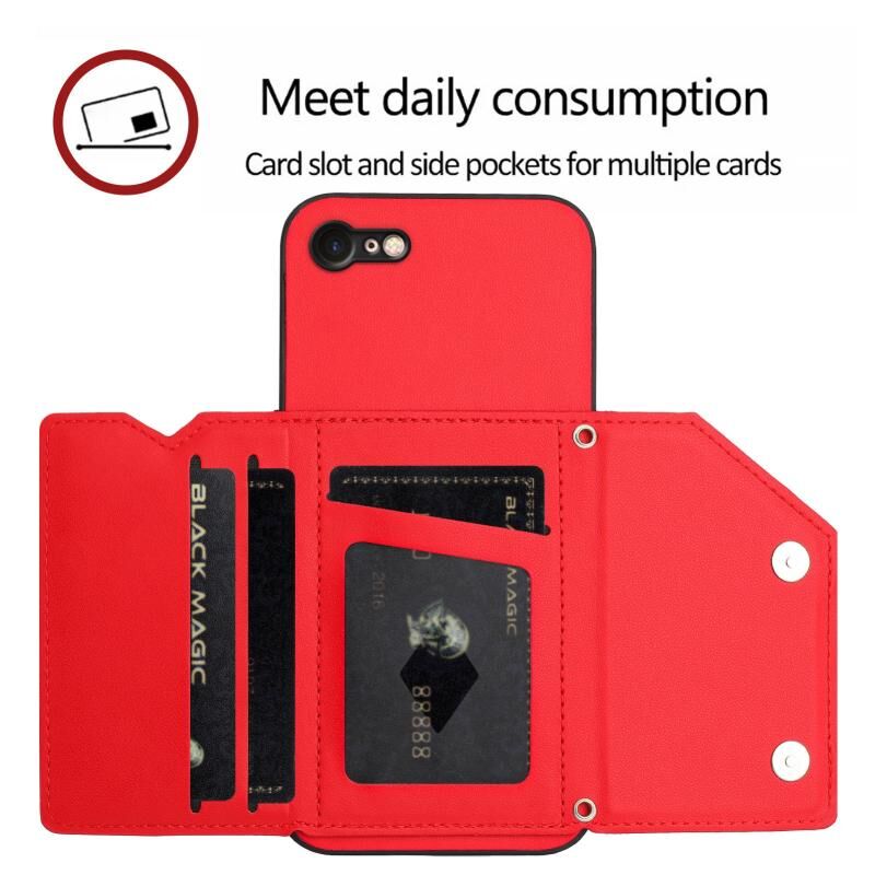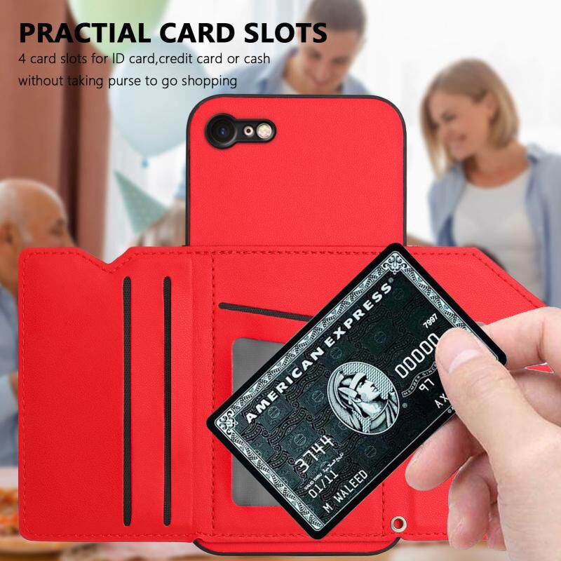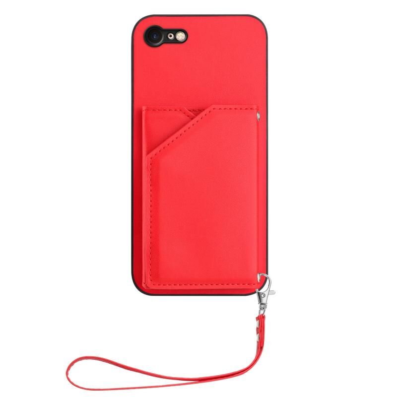 For iPhone 7 / 8 / SE 2020 2022 Skin Feel Four Card Slots Phone Case with Wrist Strap(Red)