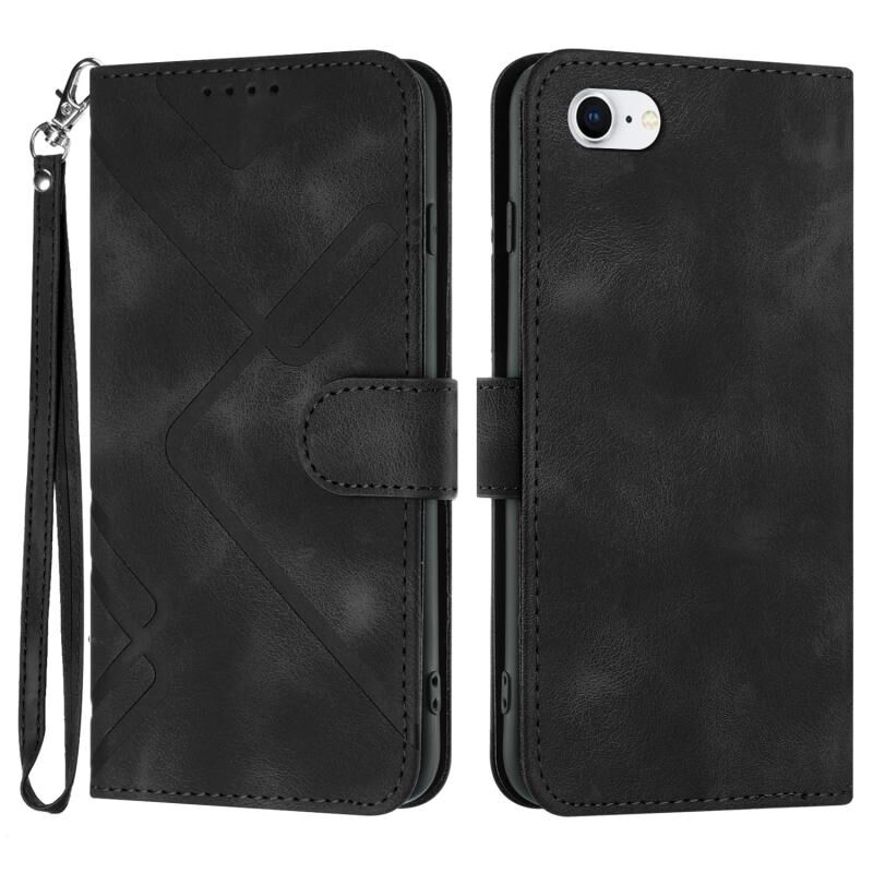 For iPhone 7 / 8 / SE 2020 / SE 2022 Line Pattern Skin Feel Leather Phone Case(Black)