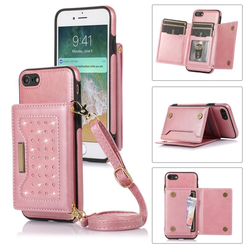 Θήκη Τηλεφώνου από Δέρμα με Προστασία RFID, Τριπλή για iPhone 7/8/SE 2020/SE 2022 με Λουρί (Μαύρο)