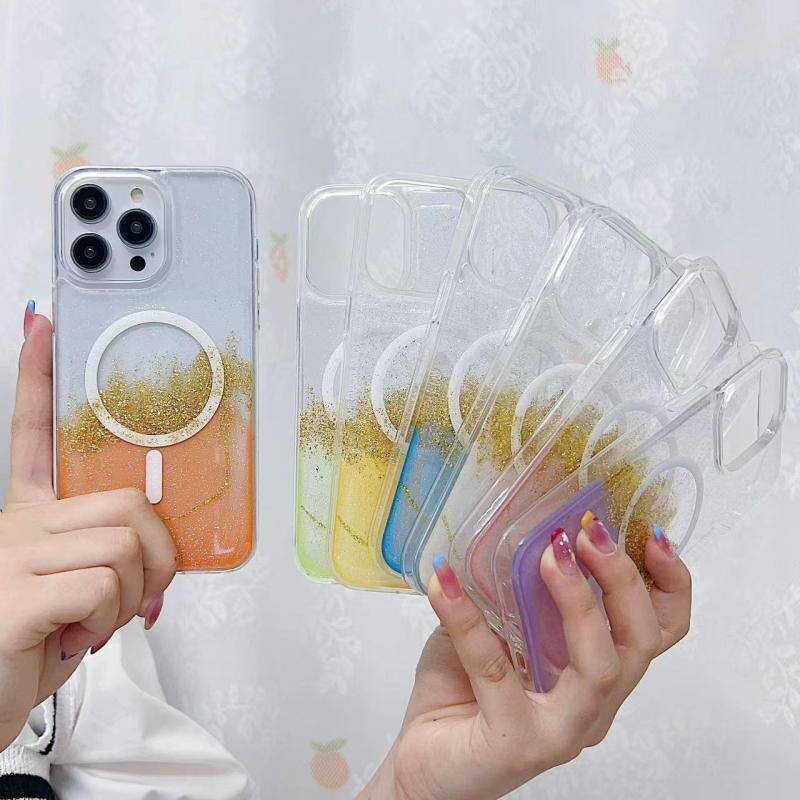 Θήκη τηλεφώνου υβριδική διαφανής TPU με επιχρύσωση MagSafe για iPhone 7 / 8 / SE 2022 / 2020 (Μπλε)