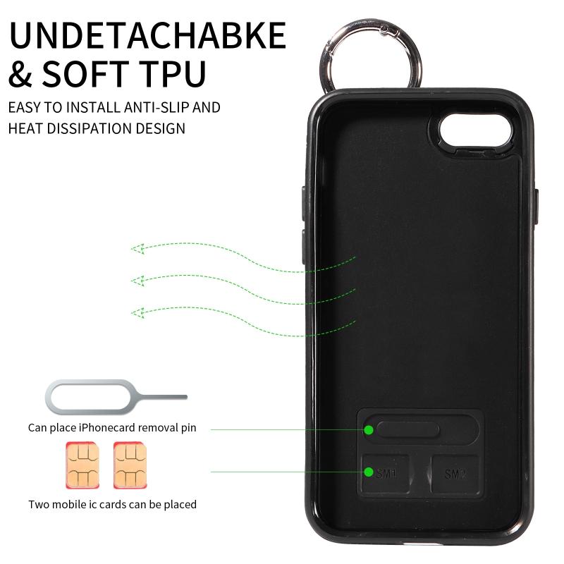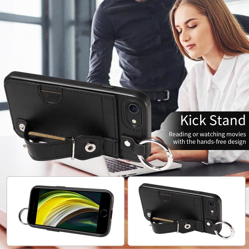 For iPhone 7 / 8 / SE 2022 Calf Texture Wrist Card Slot Ring Phone Case(Black)