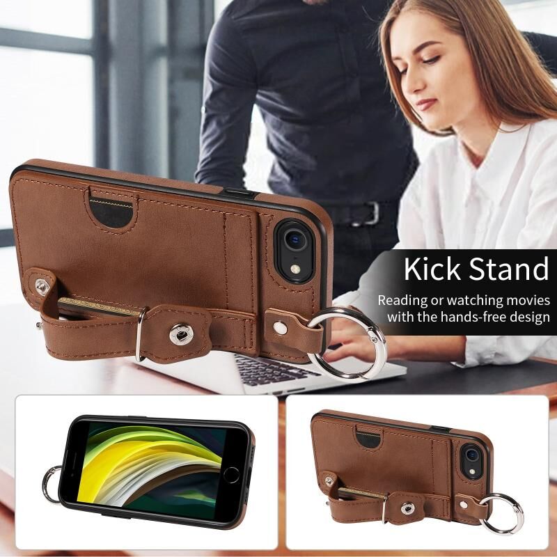 Θήκη τηλεφώνου για iPhone 7 / 8 / SE 2022 με υφή δέρματος μοσχαριού, θήκη καρπού με κάρτες και δακτύλιο (Καφέ)
