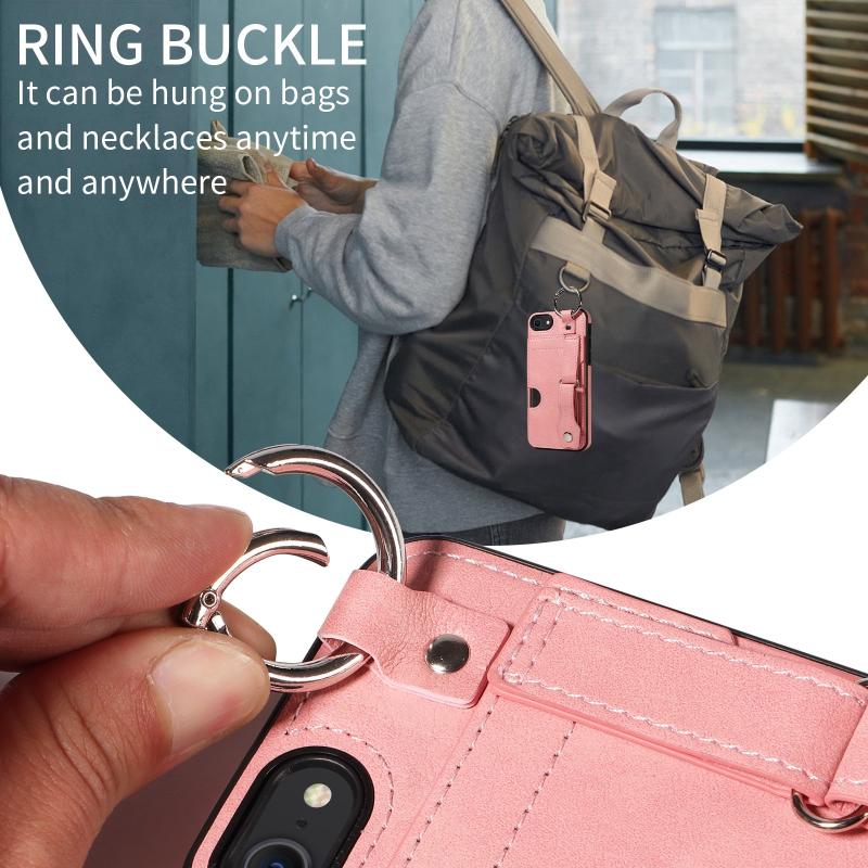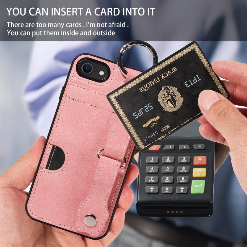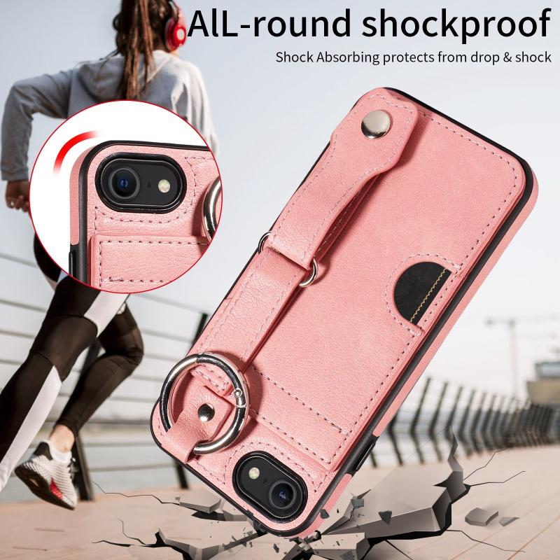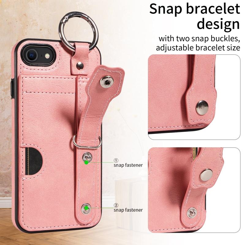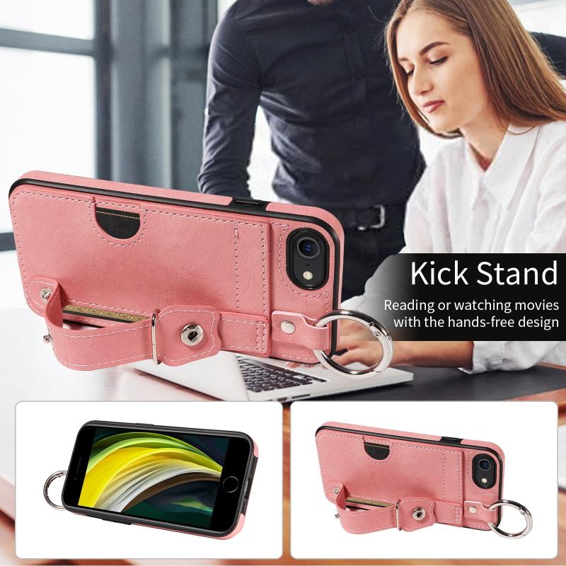 For iPhone 7 / 8 / SE 2022 Calf Texture Wrist Card Slot Ring Phone Case(Pink)