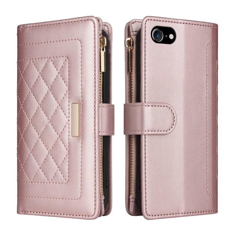 Θήκη τηλεφώνου από δέρμα με σχέδιο ρόμβου, με φερμουάρ και λουρί για iPhone 7 / 8 / SE 2022 (Χρυσό ροζ)