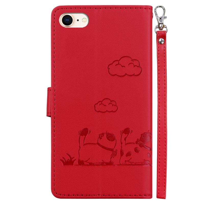 For iPhone 7 / 8 / SE 2022 Cute Cats RFID Leather Phone Case(Red)