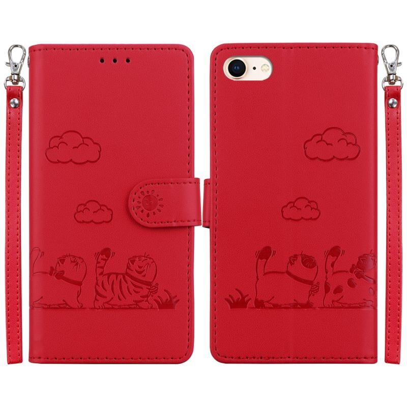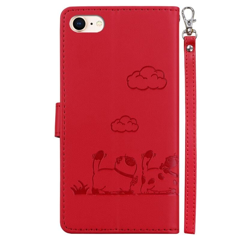 Θήκη τηλεφώνου από δέρμα με χαριτωμένες γάτες για iPhone 7 / 8 / SE 2022 (Χρυσό ροζ)