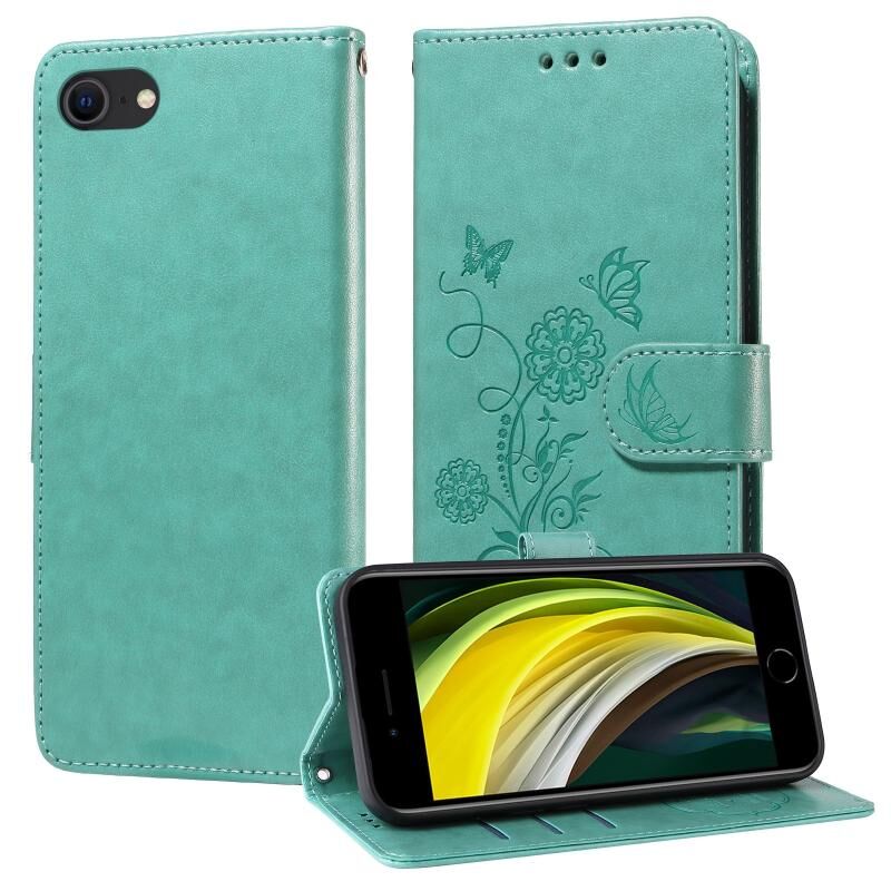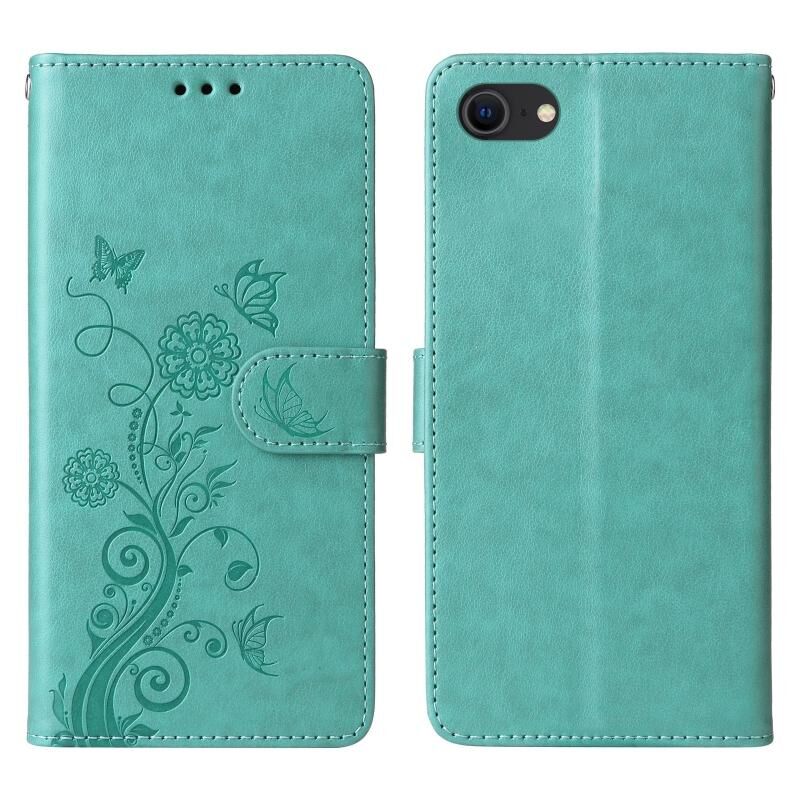 Θήκη τηλεφώνου από δέρμα με ανάγλυφα σχέδια πεταλούδας και λουλουδιών για iPhone 7 / 8 / SE 2022 (Μωβ)