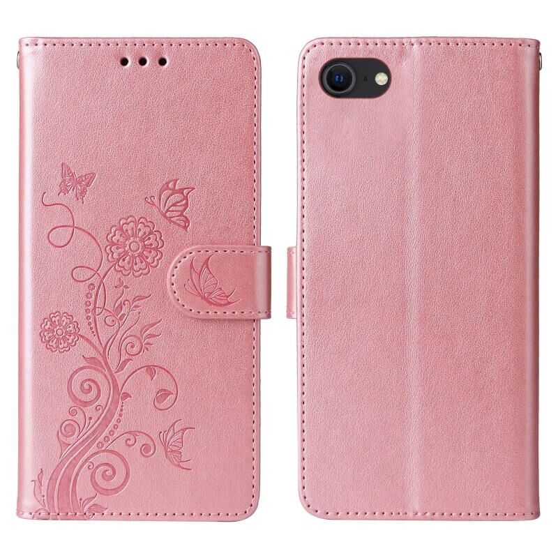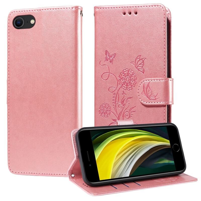 For iPhone 7 / 8 / SE 2022 Embossed Butterfly Flowers Leather Phone Case(Rose Gold)
