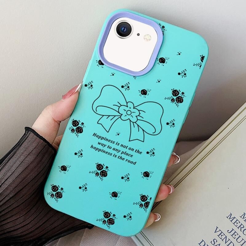 Θήκη τηλεφώνου για iPhone 7 / 8 / SE 2022, υβριδική από PC και TPU με λουλουδάτο σχέδιο και φιόγκο (Sky Cyan)