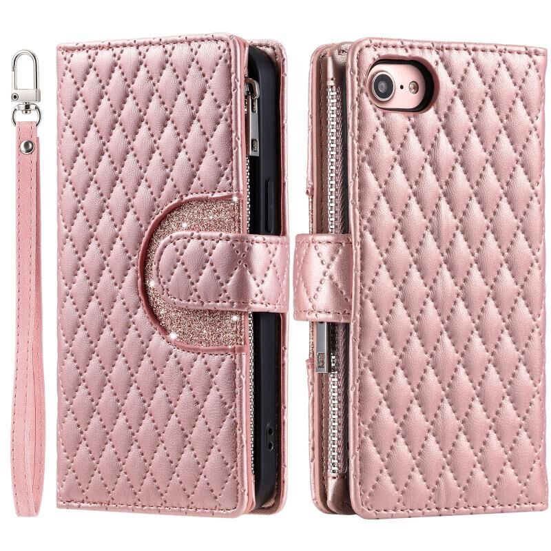Θήκη τηλεφώνου από δέρμα με φερμουάρ και λαμπερό σχέδιο δικτύου για iPhone 7 / 8 / SE 2022 (Ροζ χρυσός)