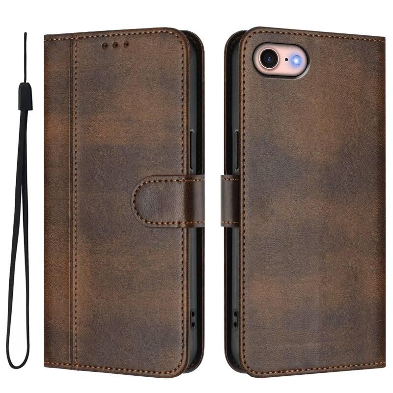 For iPhone 7 / 8 / SE 2022 Line Splicing Buckle Retro Leather Phone Case(Brown)