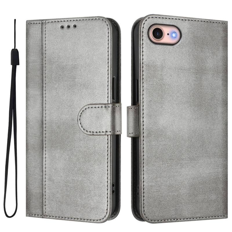 For iPhone 7 / 8 / SE 2022 Line Splicing Buckle Retro Leather Phone Case(Grey)