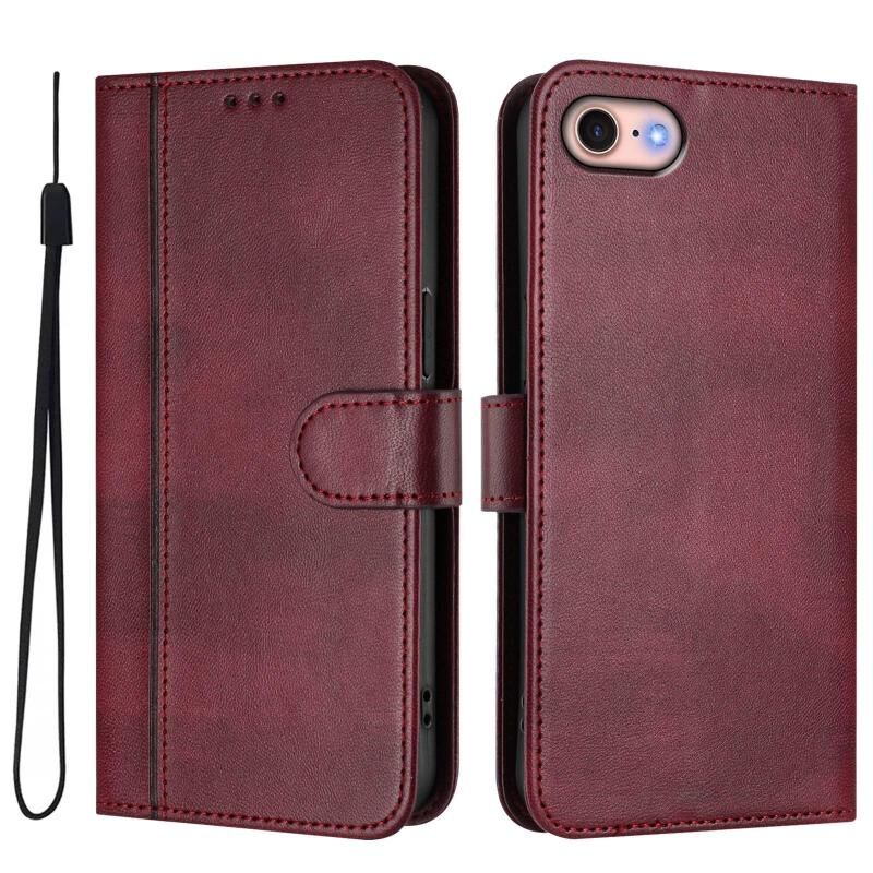 For iPhone 7 / 8 / SE 2022 Line Splicing Buckle Retro Leather Phone Case(Wine Red)