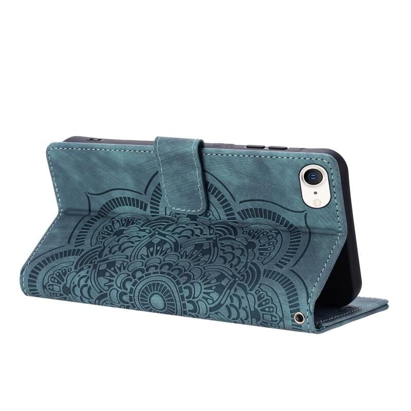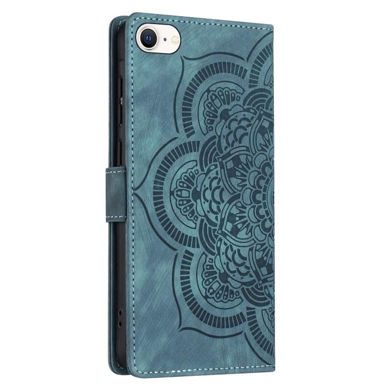 For iPhone 7 / 8 / SE 2022 Mandala Embossed Retro Frosted Leather Phone Case(Blue)