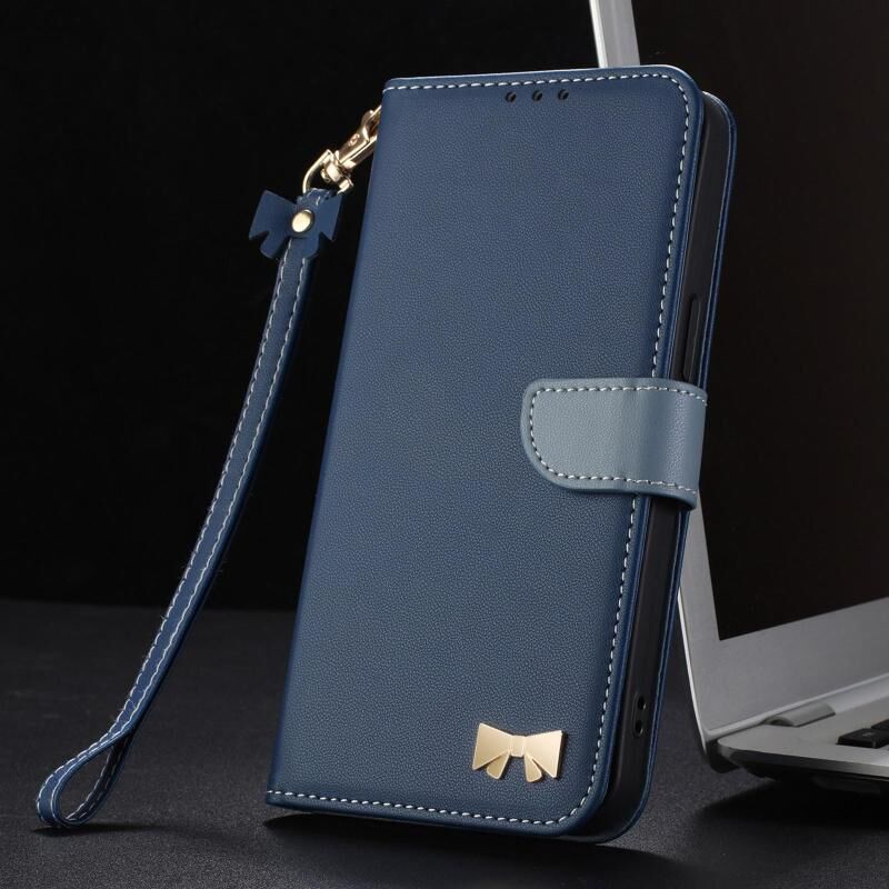 Θήκη iPhone 7 / 8 / SE 2022 Δερμάτινη με Λουρί Χεριού & Μεταλλικό Τόξο (Σκούρο Μπλε)