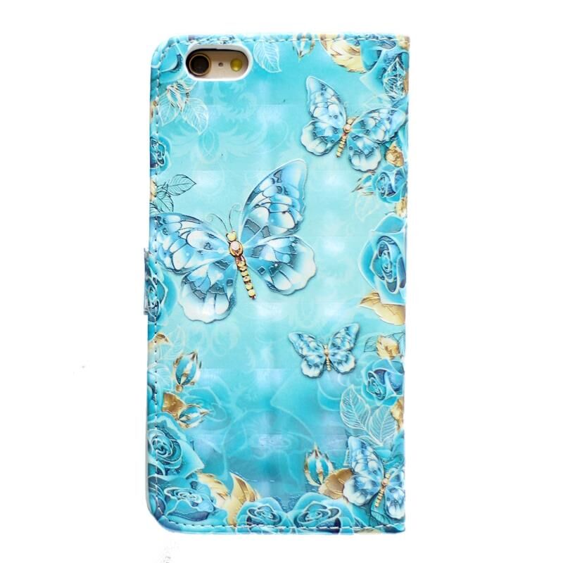 Θήκη τηλεφώνου δερμάτινη με ανάγλυφο σχέδιο λαδιού 3D για iPhone 7 / 8 / SE 2022 (Μπλε Πεταλούδες)