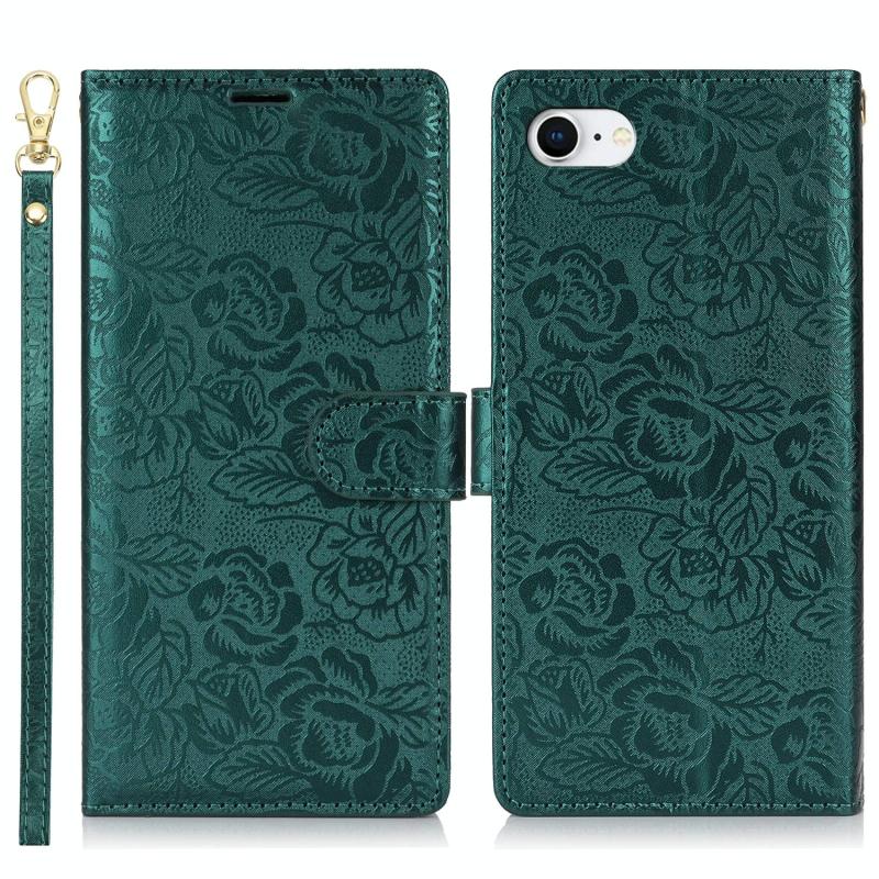 For iPhone 7 / 8 / SE 2022 Peony Flowers Imprint Leather Phone Case(Green)