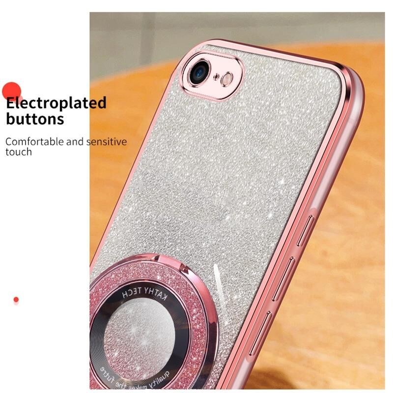 For iPhone 7 / 8 / SE 2022 Plated Gradient Glitter Round Holder TPU Phone Case(Black)