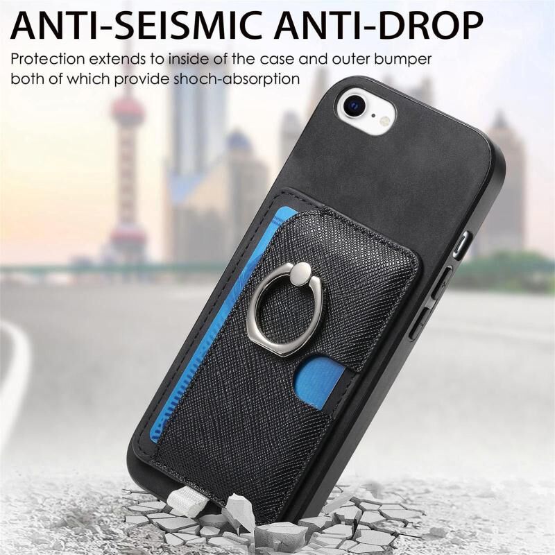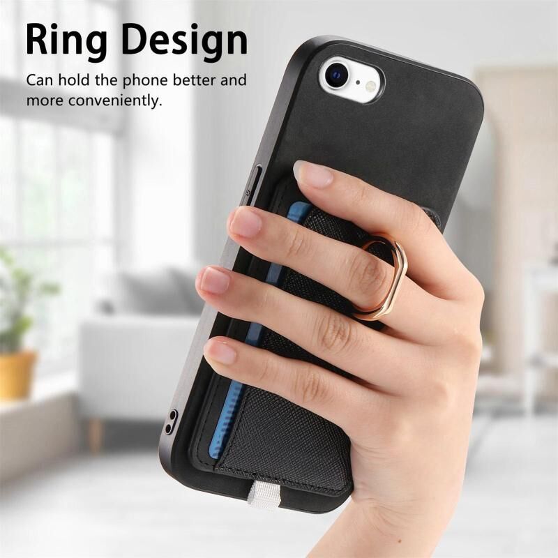 For iPhone 7 / 8 / SE 2022 Retro Cross Leather Ring Side Insert Card Bag MagSafe Phone Case(Black)