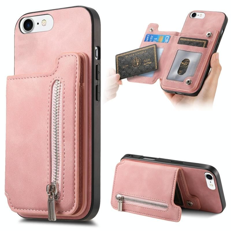 Θήκη κινητού τηλεφώνου για iPhone 7 / 8 / SE 2022, Retro MagSafe, τσέπη κάρτας με φερμουάρ (ρόζ)