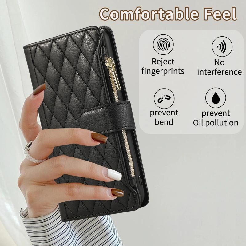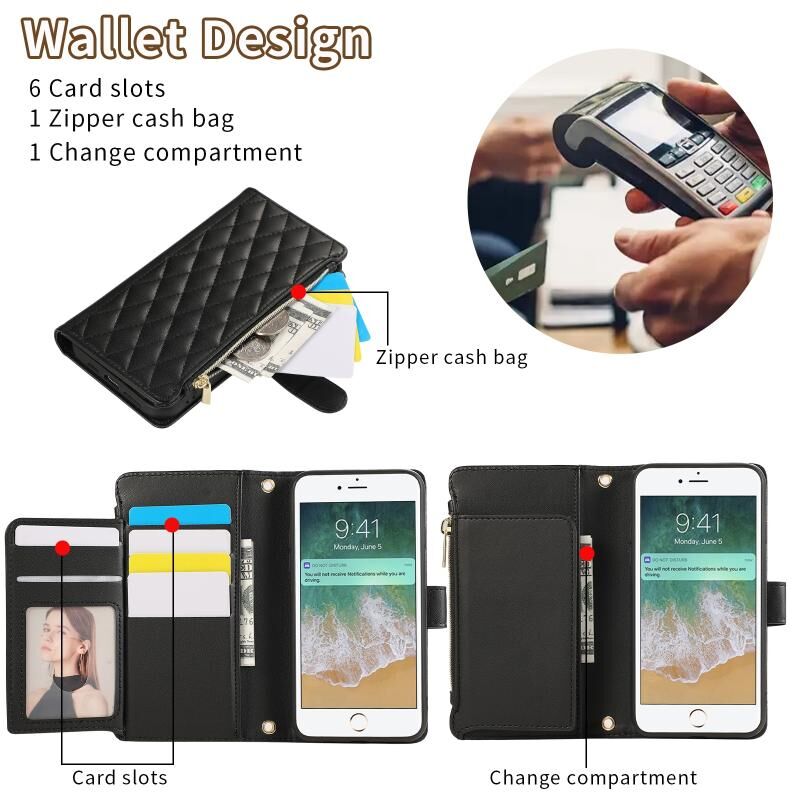 5. Λειτουργία πορτοφολιού με πολλές κάρτες: Πολλαπλές υποδοχές για κάρτες και τσέπες πορτοφολιού με φερμουάρ, διαμερίσματα για μετρητά μπορούν να αποθηκεύσουν τις πιστωτικές σας κάρτες και τα καθημερινά μικρά χαρτονομίσματα.