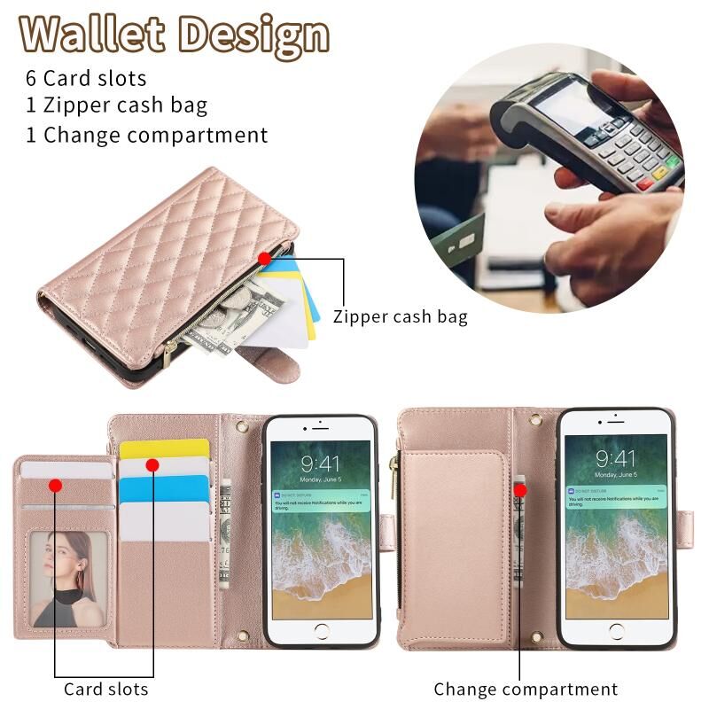 5. Multi-card Wallet Function: Multiple card slots and zipper wallet pockets, cash compartments can store your credit cards and daily small bills.