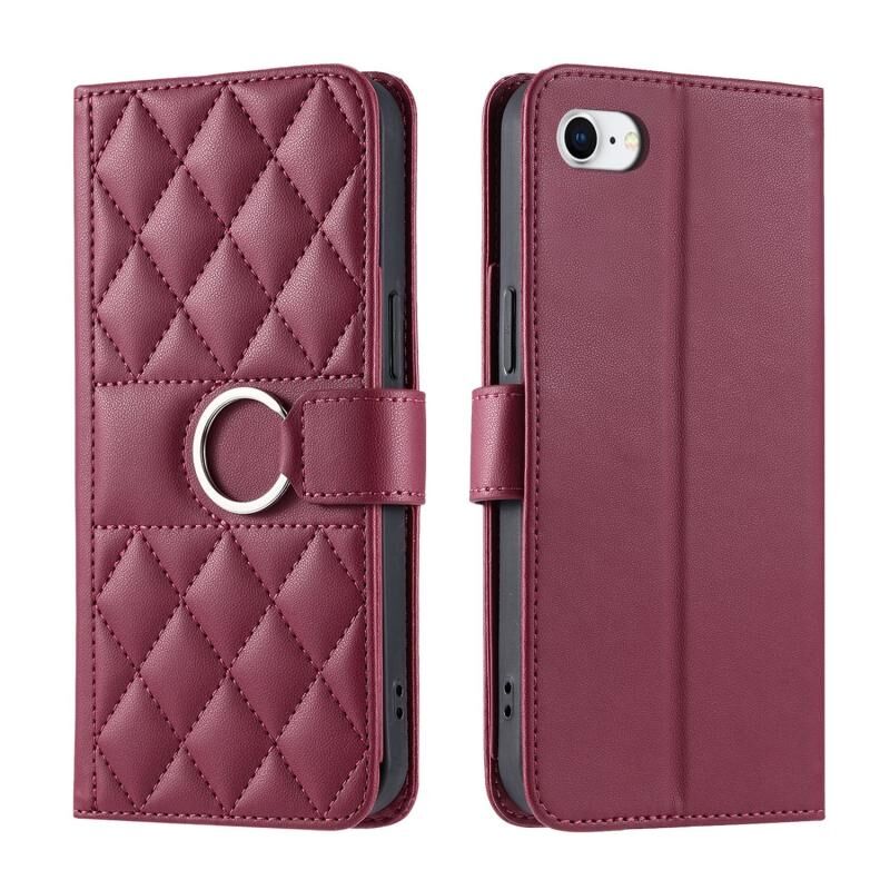For iPhone 7 / 8 / SE 2022 Ring Buckle Rhombic Leather Phone Case(Red)