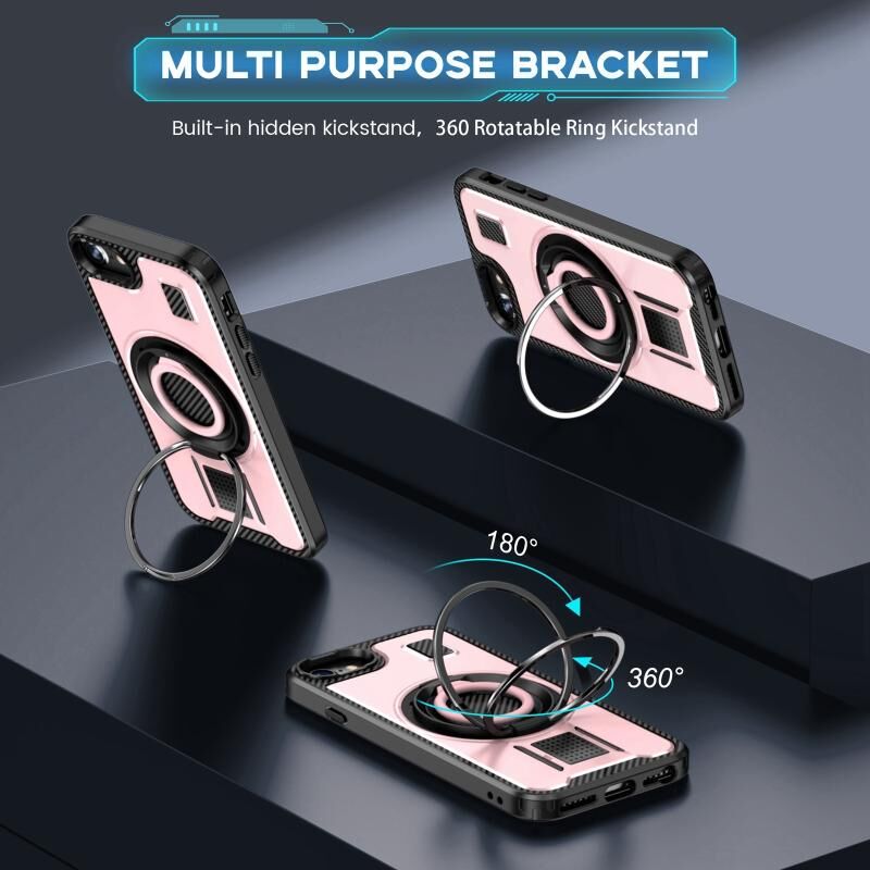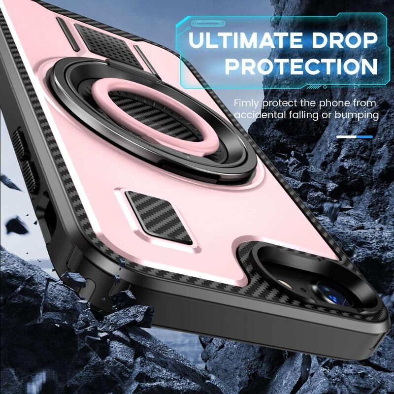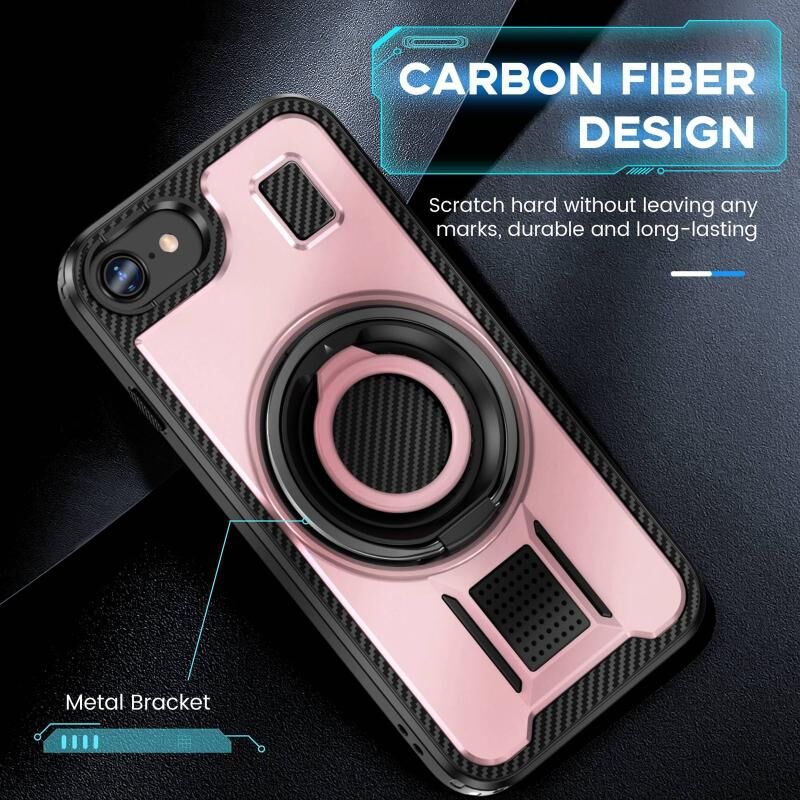 Θήκη τηλεφώνου για iPhone 7 / 8 / SE 2022 με δακτύλιο στήριξης, υβριδική από PC και TPU, ανθρακονήματα (Ροζ χρυσός)