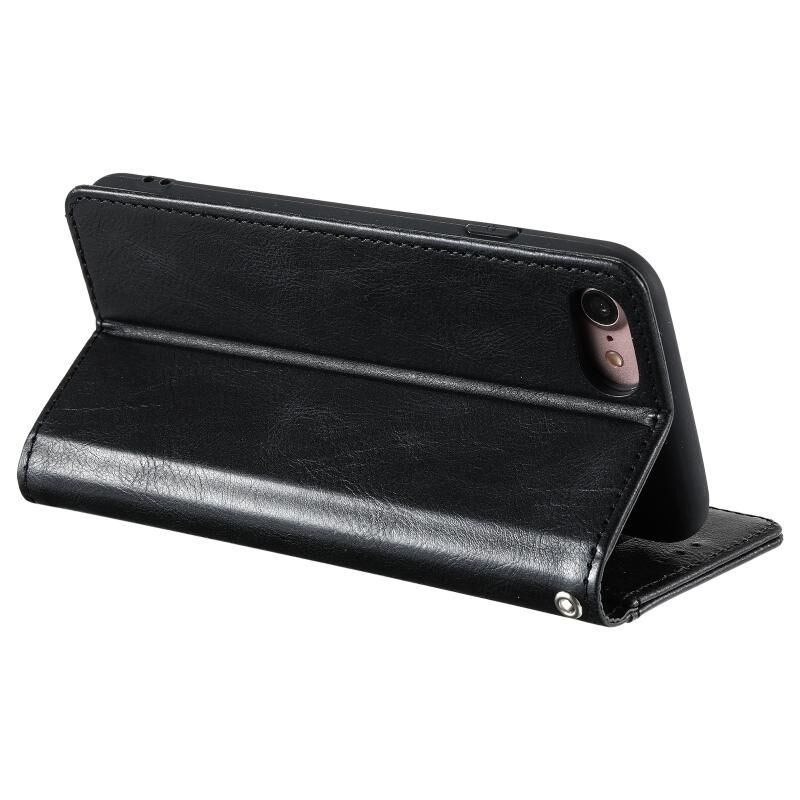 Θήκη τηλεφώνου από δέρμα, απλή, για iPhone 7 / 8 / SE 2022, με θήκη για 6 κάρτες (Μαύρο)