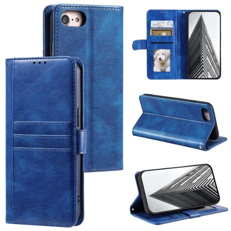 For iPhone 7 / 8 / SE 2022 Simple 6-Card Wallet Leather Phone Case(Blue)