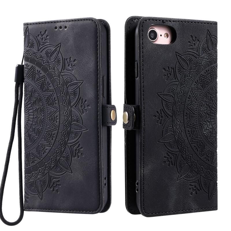 For iPhone 7 / 8 / SE 2022 Skin Feel Totem Embossed Leather Phone Case(Black)